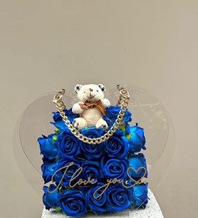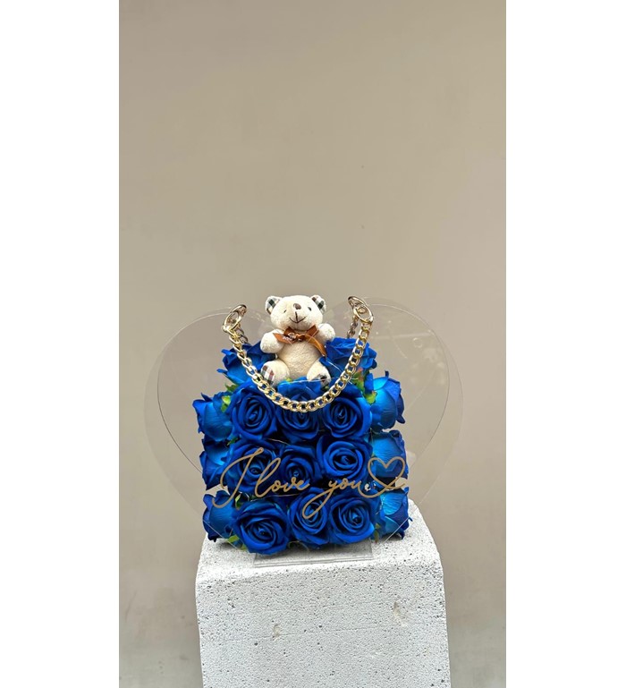 Kalpli taşıma çantasında mavi güller
