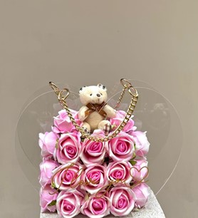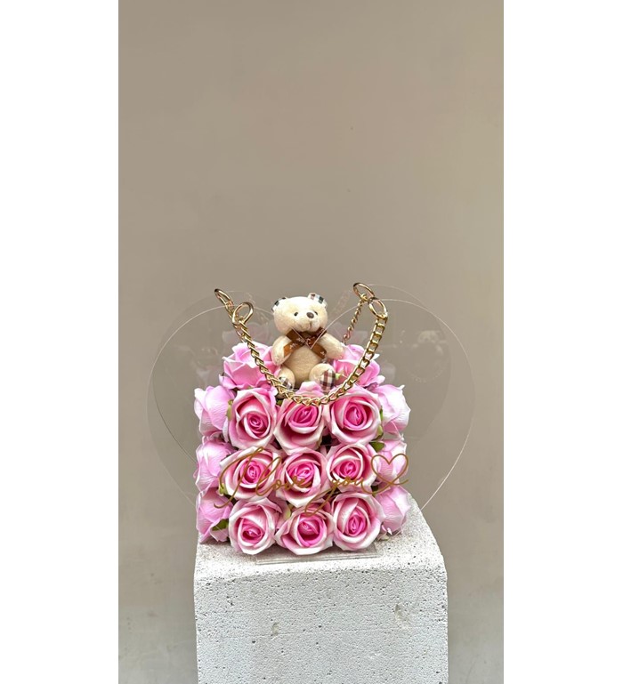 Kalpli taşıma çantasında pembe güller