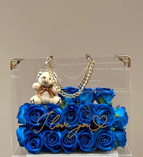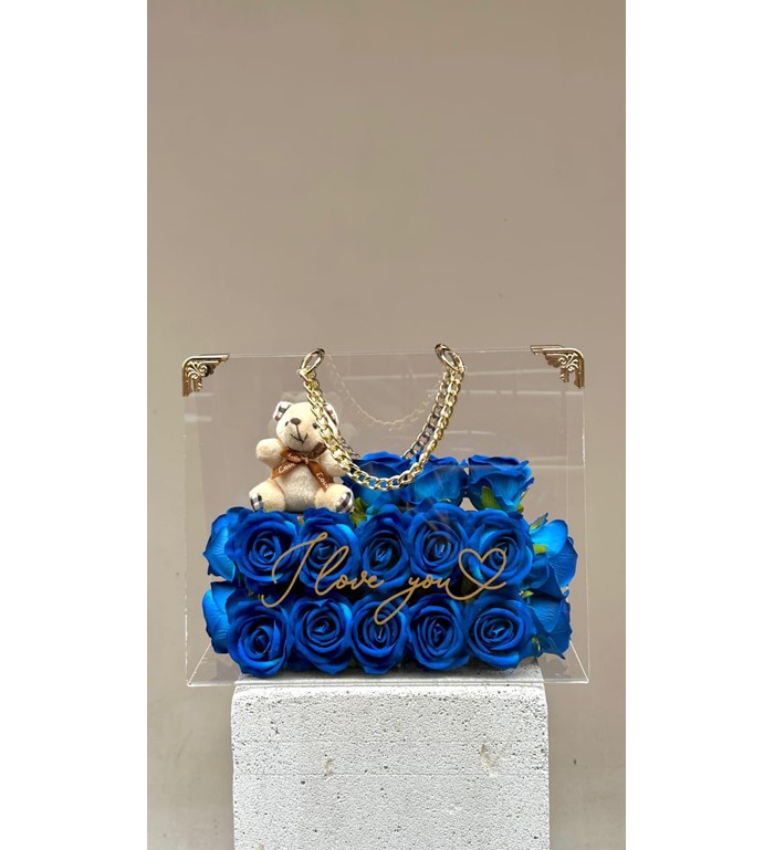 Taşıma çantasında mavi güller